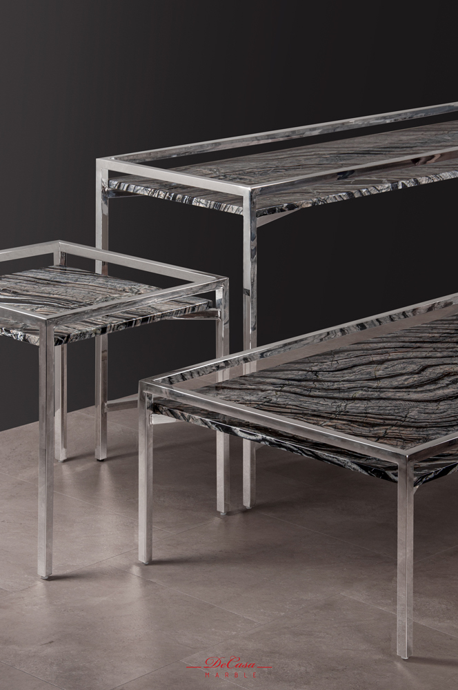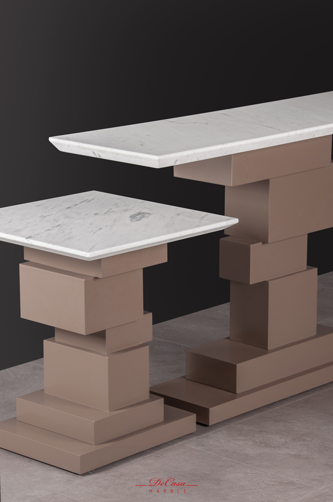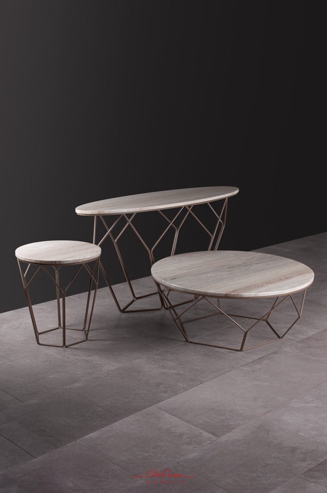 Bases are reminiscent of block-like structures which give the tables a sense of strength and invulnerability.
