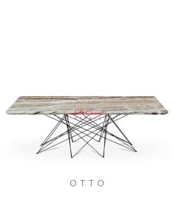 Dilegno Onyx.Translucent and expressive, timeless and trendy a transcending beige marble with blushes of pink and olive. Quirky and dramatic, a marble table that draws attention to your dining area.
