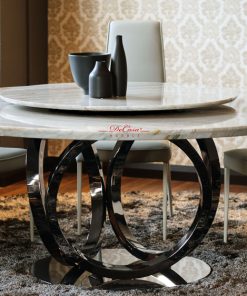 Palisandro. Tranquillity epitomized in grey marble playing backdrop to a soothing symphony of pink and brown. A minimalist luxury of marble dining table that will never go out of style.